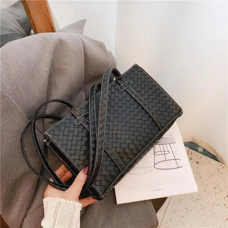 Woven Handbags Women Bales Tide Weave Hand Shoulder Lady Retro Solid Purse Small