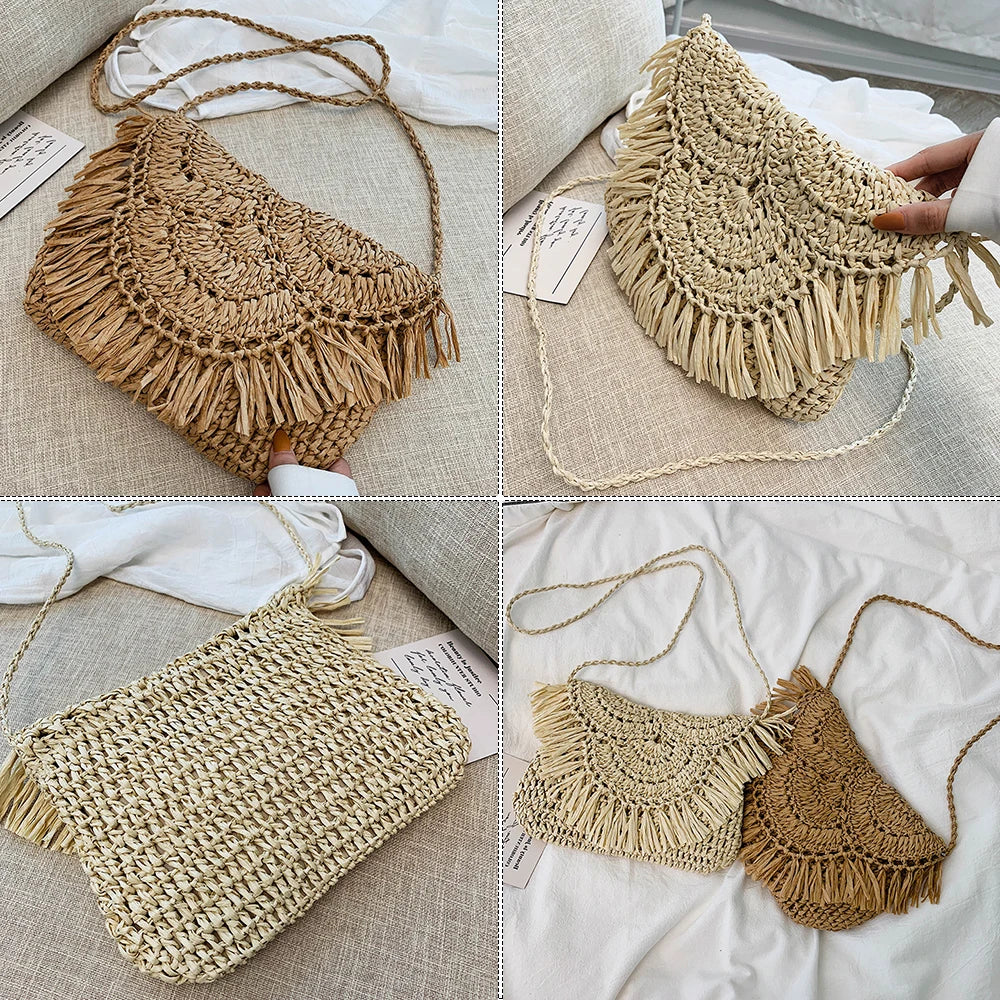 Woven Raffia Straw Shoulder Bag for Women Beach Shopping Crossbody Tote