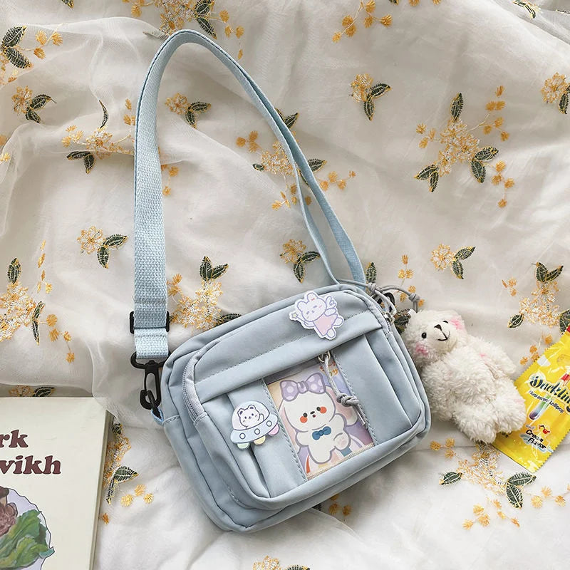 This stylish one shoulder bag is perfect for college students with its canvas material and adjustable strap.