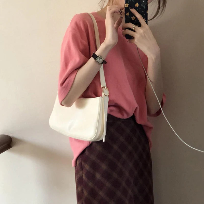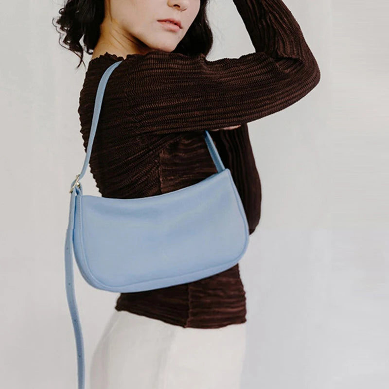 Stay stylish with this soft-faced underarm bag made of high-quality PU material. Features a zipper closure and comes in six trendy colors.