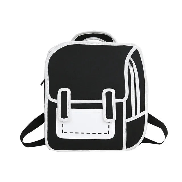 3D Stereo Comic Backpack for Girls - Canvas Messenger Tote Student Bags