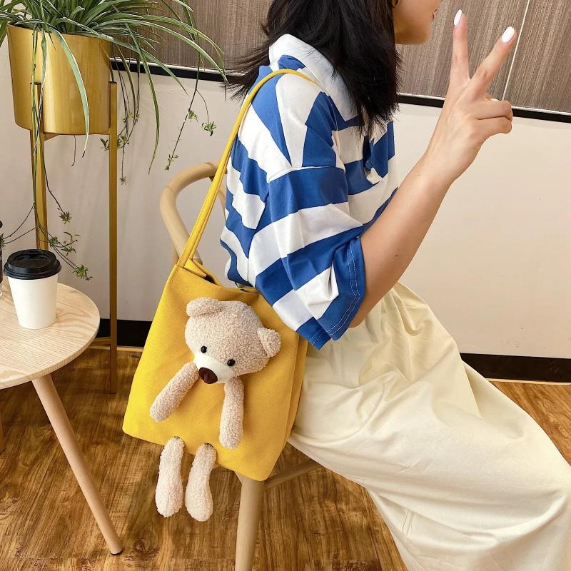 Bear Women Canvas Handbags All-match Ladies Shoulder Bag