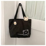 Bear Women Canvas Zipper Bag Student Tote Satchel Travel Purse Handbag