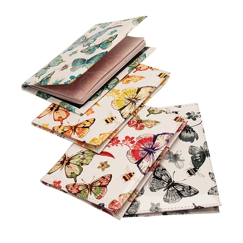 Keep your passport safe and stylish with this PU leather cover featuring bees, butterflies, and flowers. Perfect for travel!