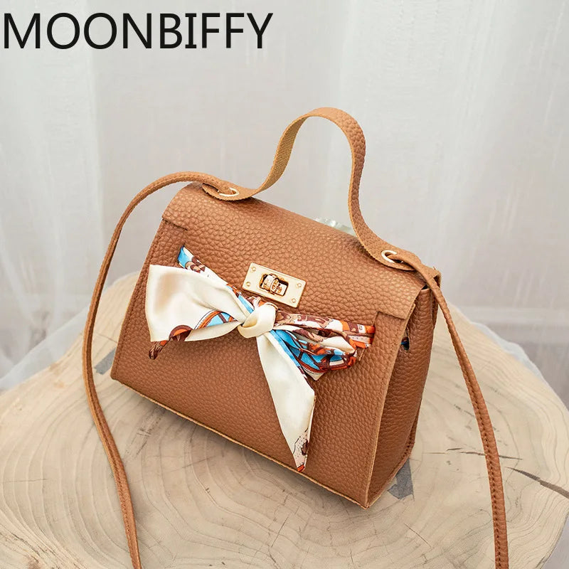 Stay stylish with this small shoulder bag made of high-quality PU leather. Features a bow-knot design and a single strap for a chic and elegant look.