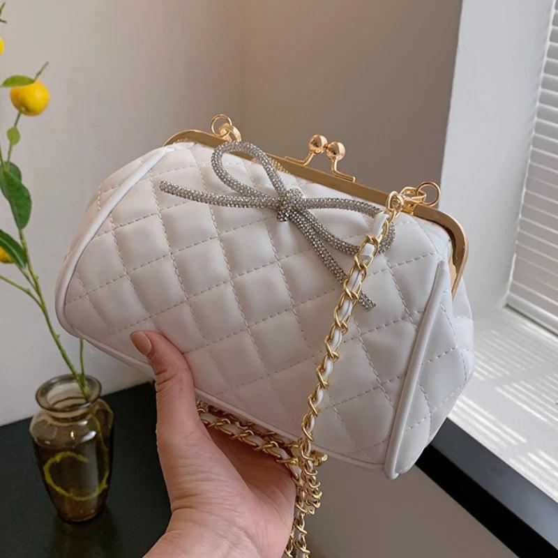 This fashionable bag features a bow shell design, perfect for a variety of occasions. Can be used as a shoulder bag, clutch, crossbody bag, or with the long belt.