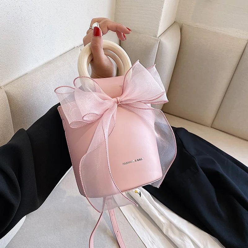 Bow Women's Bag All-match Shoulder Messenger Bucket Bag