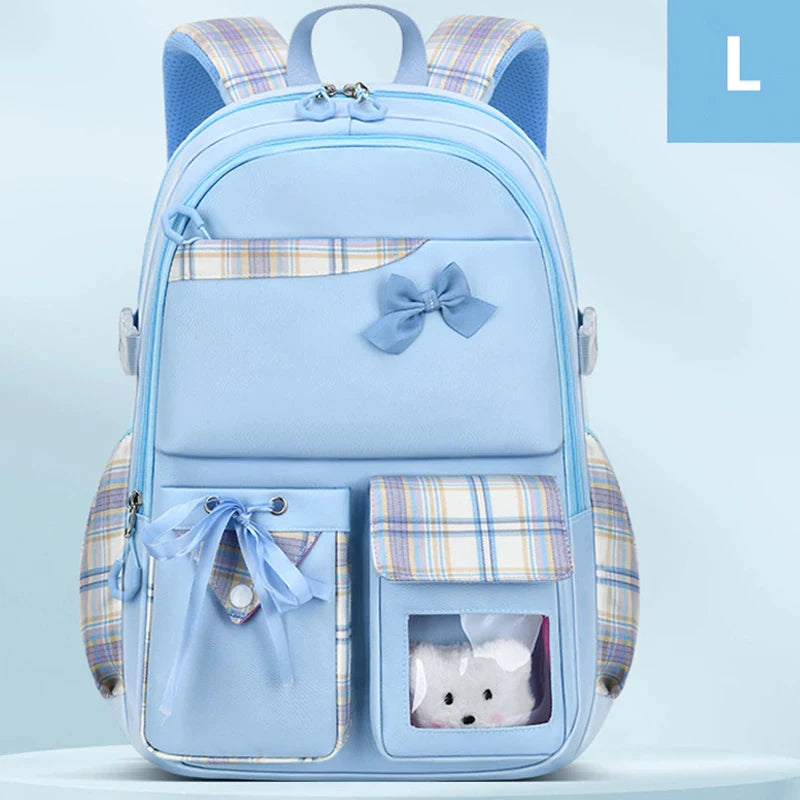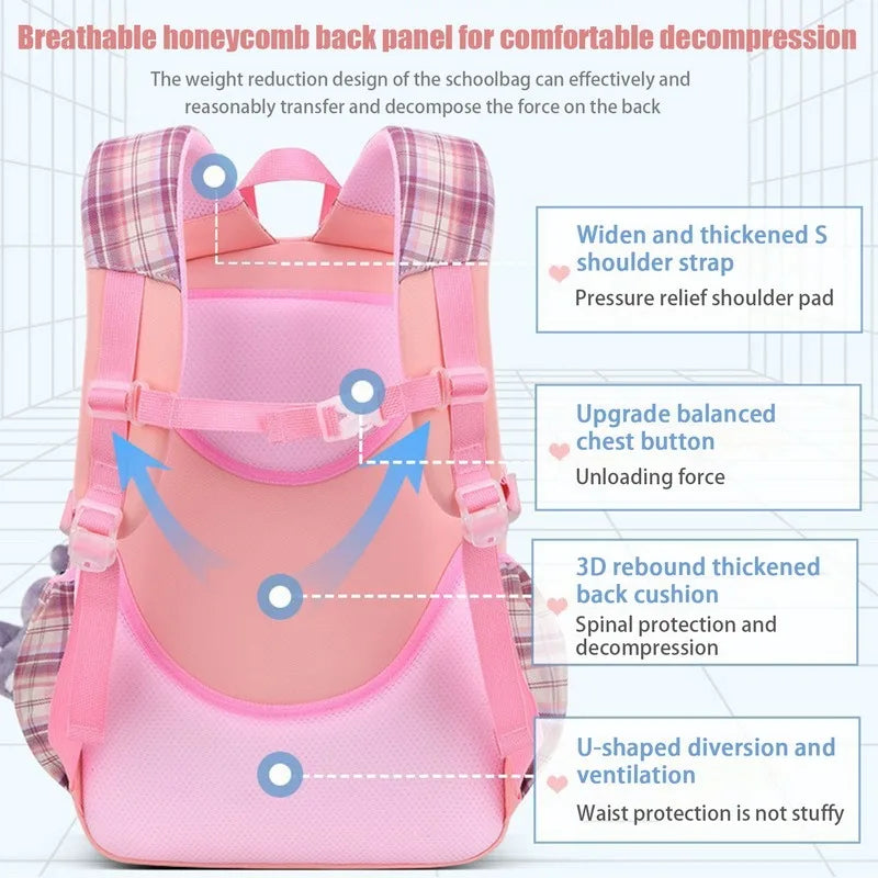 This adorable cartoon school bag is designed for teenage girls and kids. It features a bowknot and offers high capacity with an orthopedic design for comfort.