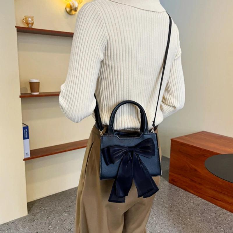 This portable shoulder bag features a stylish big bow design for women. Made of high-quality PU leather, it is perfect for daily use. Sleek and compact, this tote handbag is a must-have accessory for any fashion-forward woman.