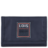 This boy's wallet is made from waterproof coated canvas material, featuring a durable design. It includes multiple compartments to store coins, cards, tickets, and IDs like DNI and Carnet.