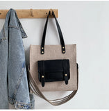 Casual Linen Shoulder Bag Wide Strap Handbag Big Tote