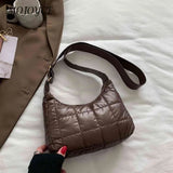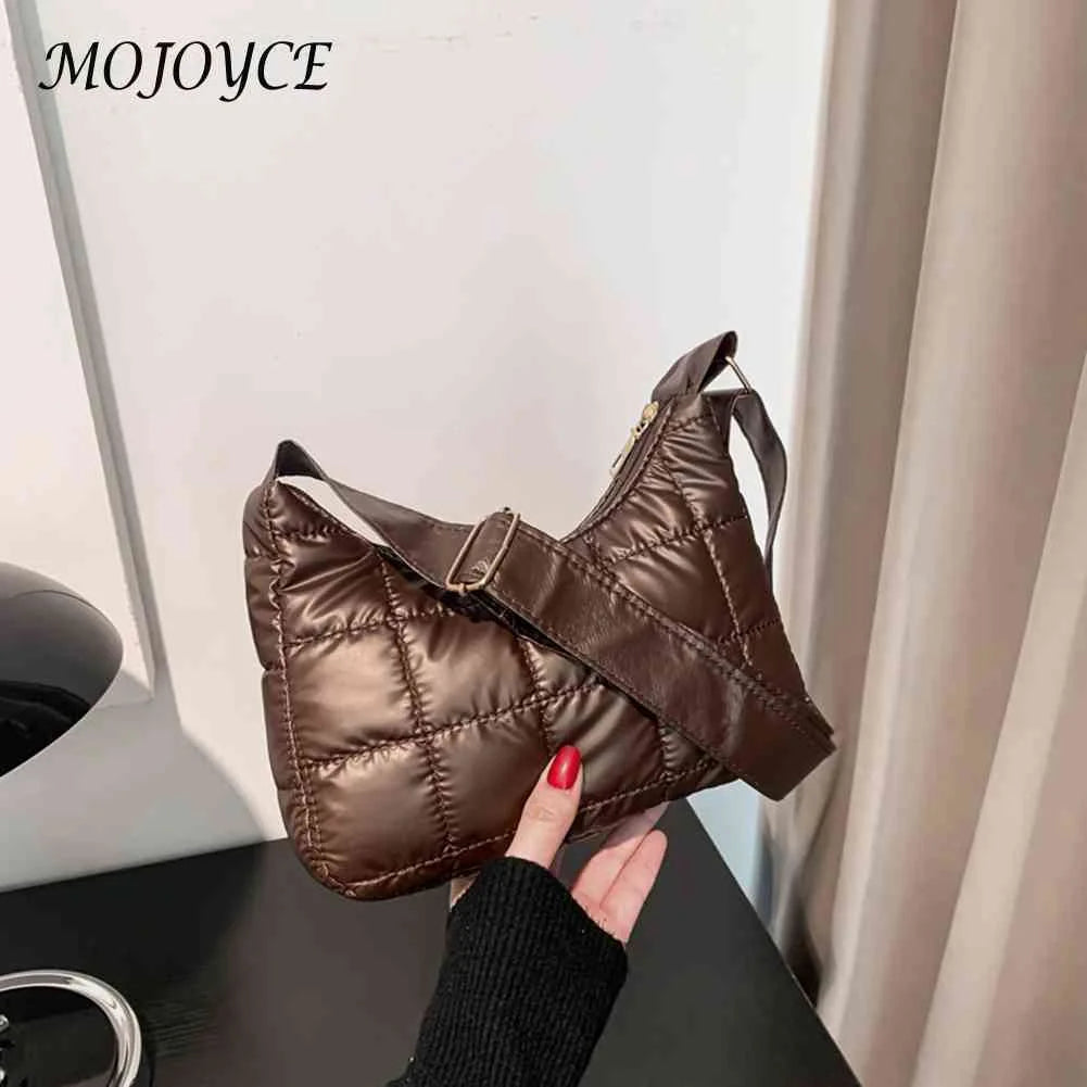 Stay stylish and cozy with this cotton-padded underarm bag. It features a soft quilted design with an adjustable strap and solid diamonds. Comes with a small round purse.