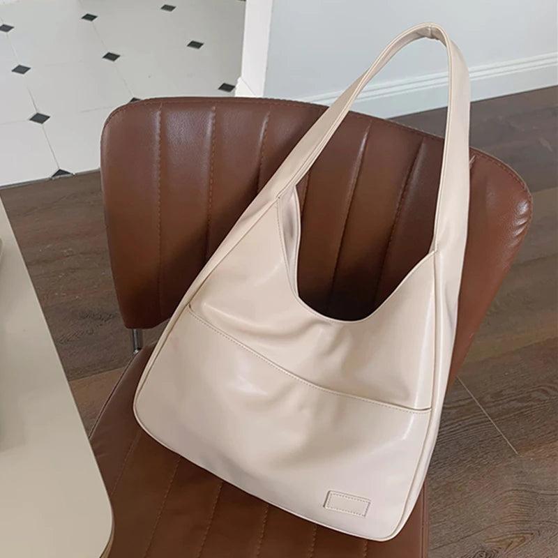 Casual Shoulder Bag Large Capacity PU Leather Wide Straps Tote Bag