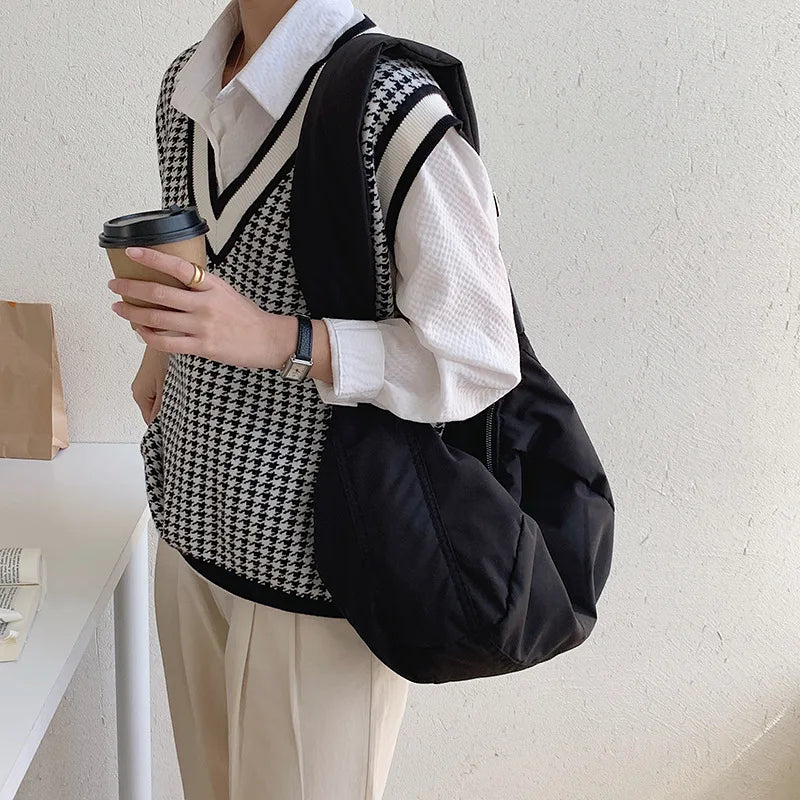 This casual women shoulder bag is made of durable nylon material with a wide strap design. It's perfect for light travel and everyday use.
