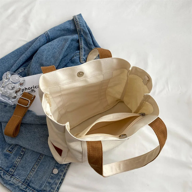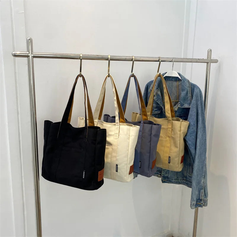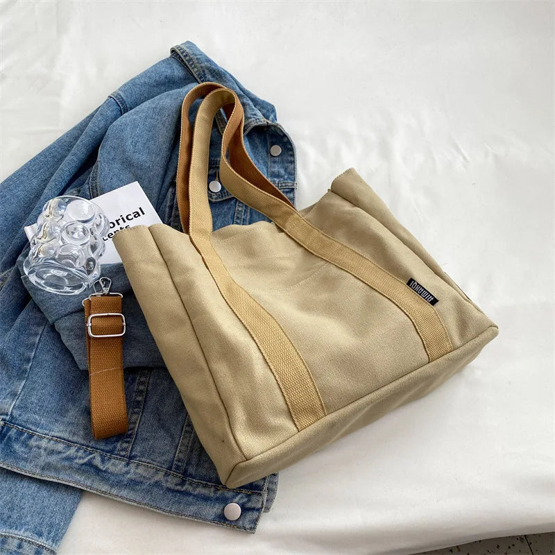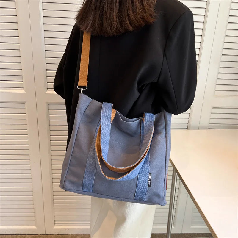 Casual Women's Canvas Shoulder Bag Large Capacity Tote Bag Preppy Style
