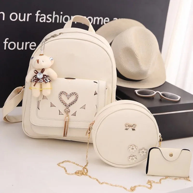 Stay stylish and organized with this PU leather backpack. Perfect for students, it offers ample storage space and a fashionable design.