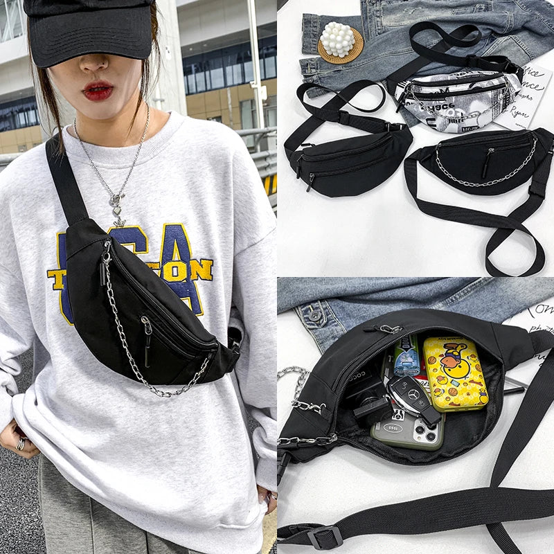 - Nylon waist bag with chain strap