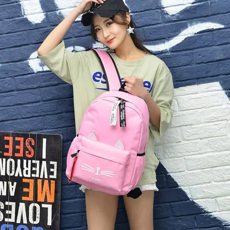 This trendy school bag features adorable cat ears design, perfect for teenage girls. Made of durable nylon material, suitable for students of all ages.