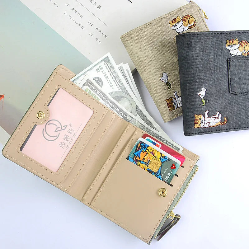 Stay stylish and organized with this cat embroidered canvas wallet featuring a large capacity design. Made for women who appreciate a unique touch.