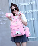This four-piece set includes a backpack, shoulder bag, and more. Perfect for primary school students with a fun cartoon cat design.
