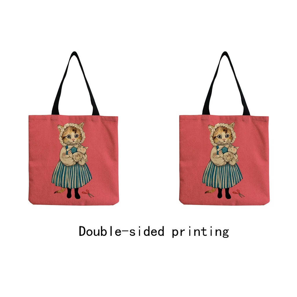 This Japanese style illustration handbag features a cute cat girl print. It is perfect for women who love unique designs. The bag is a high-capacity, reusable tote that is great for outdoor use or shopping trips.