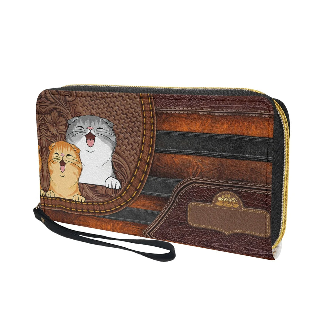 Cat Leather Purse Clutch Wallet Zip Around Cash Holder for Women