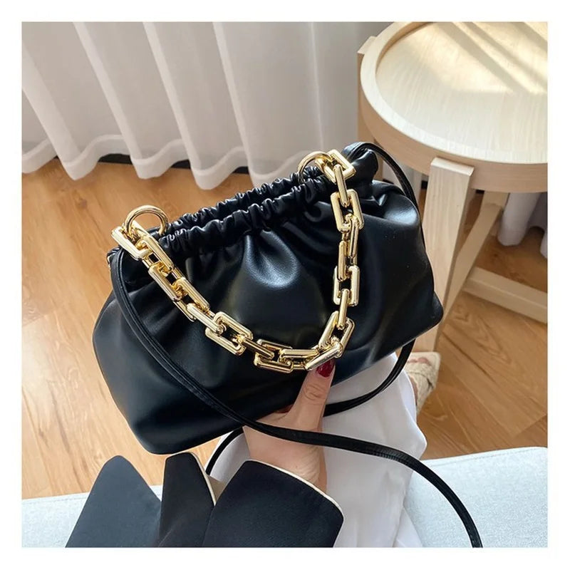 This stylish handbag features a thick chain dumpling clip design, perfect for a night out or special occasion. Made of high-quality materials, this bag is both trendy and functional.