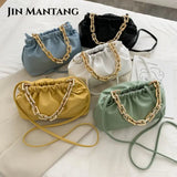 Cloud Underarm Shoulder Bag with Thick Chains Dumpling Clip Purse, Totes Handbag