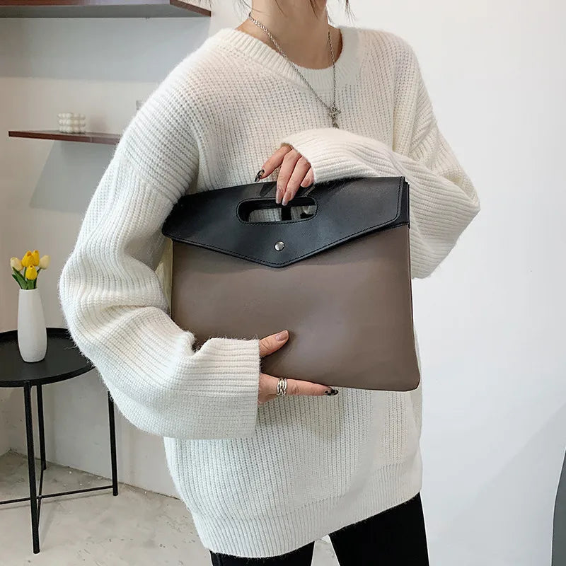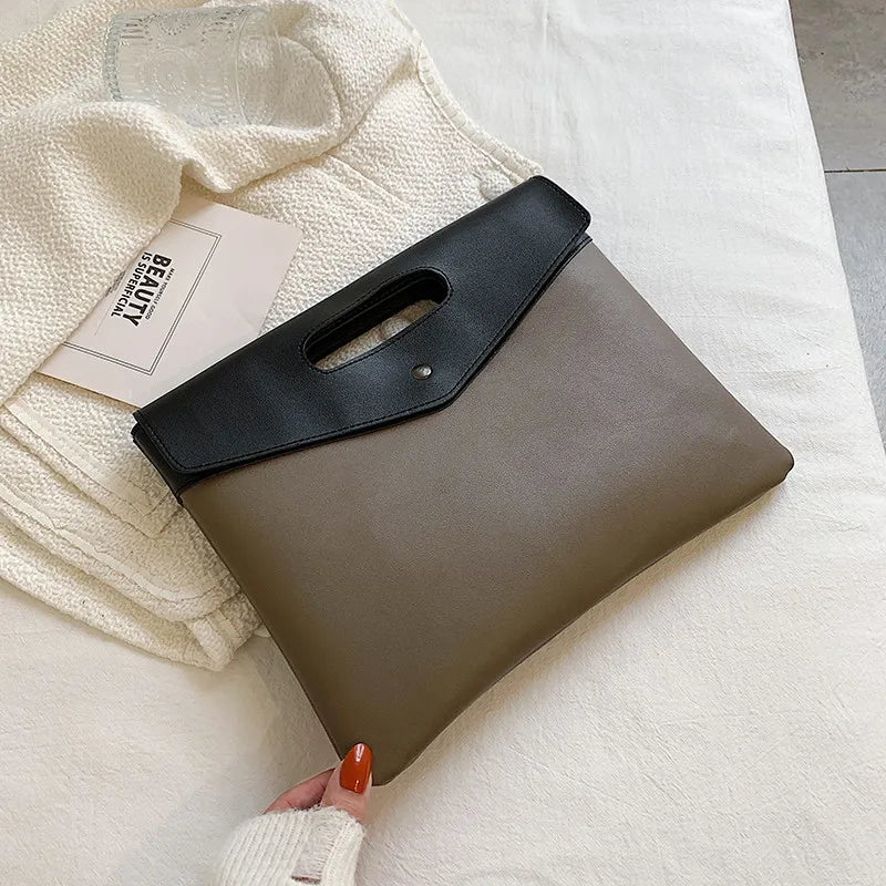 This stylish clutch bag is perfect for women on the go. It features a unique printed design and can be used as a briefcase, purse, or tablet bag. The flat envelope style adds a touch of sophistication to any outfit.