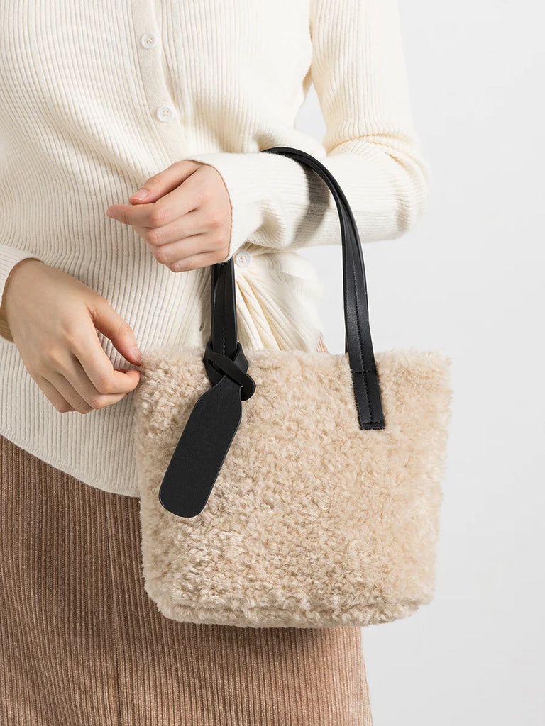 Coffe Sqaure Faux Fur Women Tote Bag - Soft Fluffy Small Shopper Purse