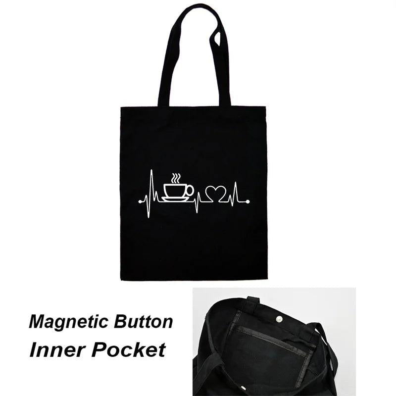 This reusable canvas shopper bag with coffee printing is perfect for moms and women on-the-go. It's ideal for grocery shopping, carrying essentials, and more.