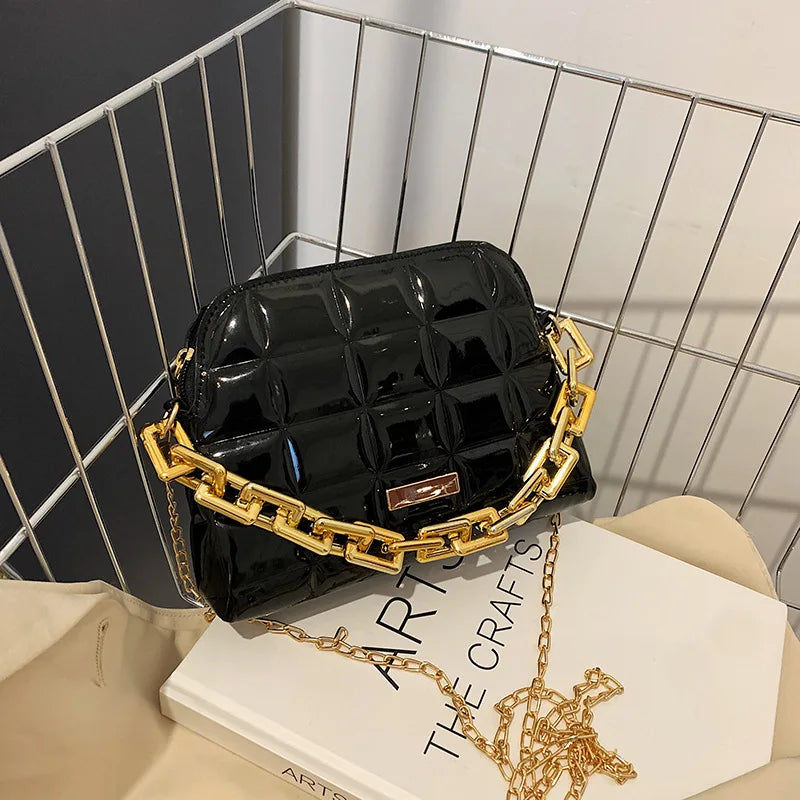 This stylish saddle shoulder bag is crafted from high-quality PU leather with a patent finish, making it a perfect accessory for women on the go.
