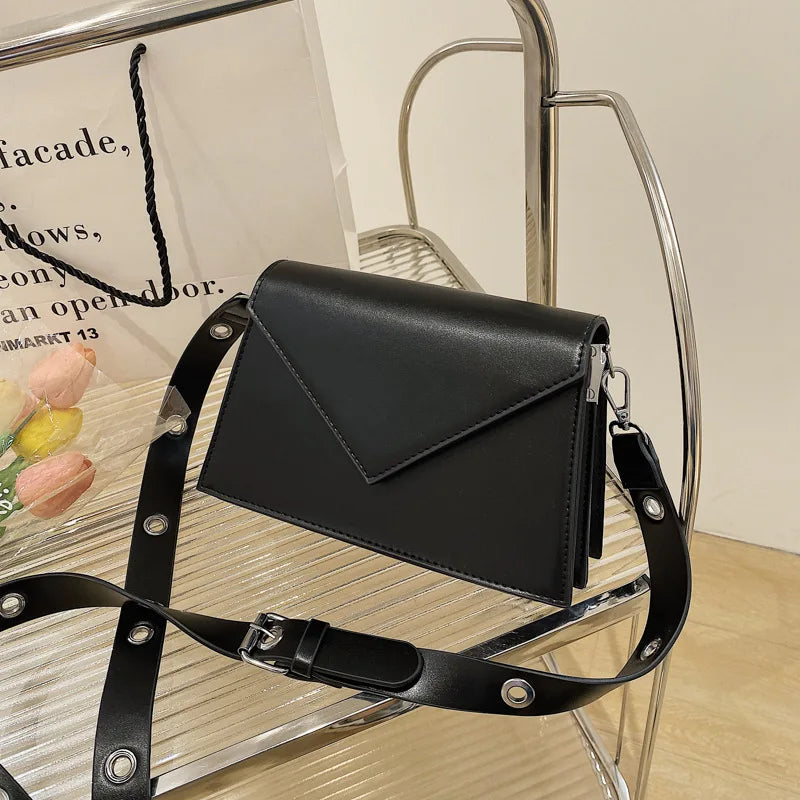 This stylish shoulder messenger bag features a triangle cover design and eyelet chain details. It's perfect for women who love trendy accessories.