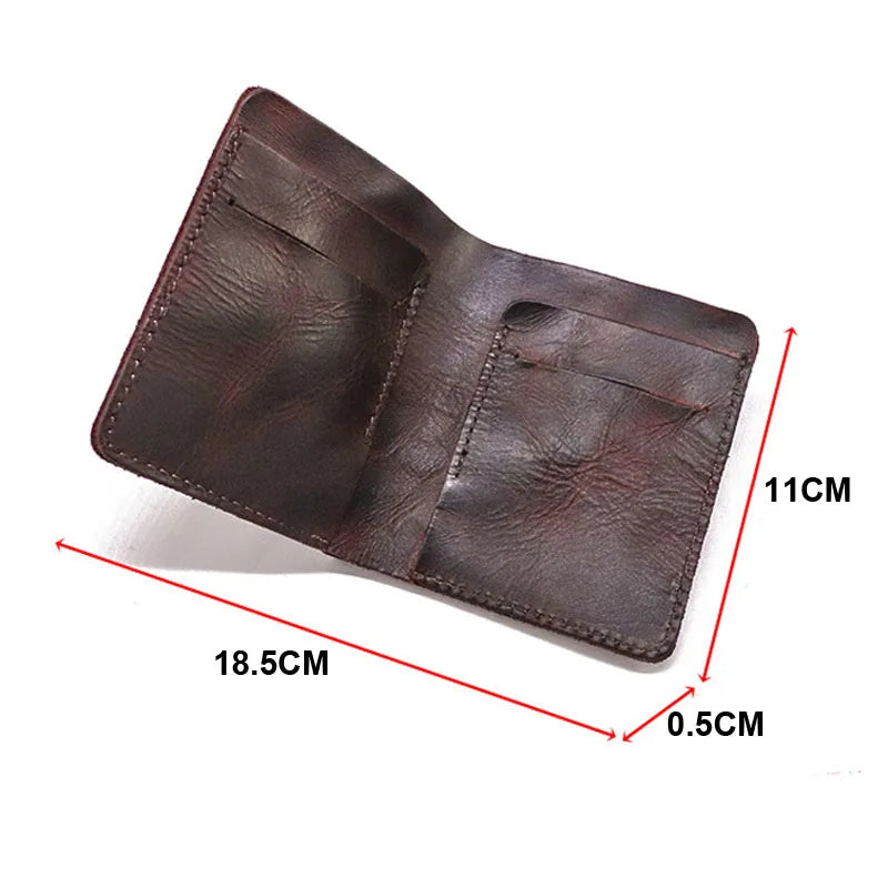 1st Layer Cowhide Men's Wallet Vertical Money Clip Retro Male Purse Wallet