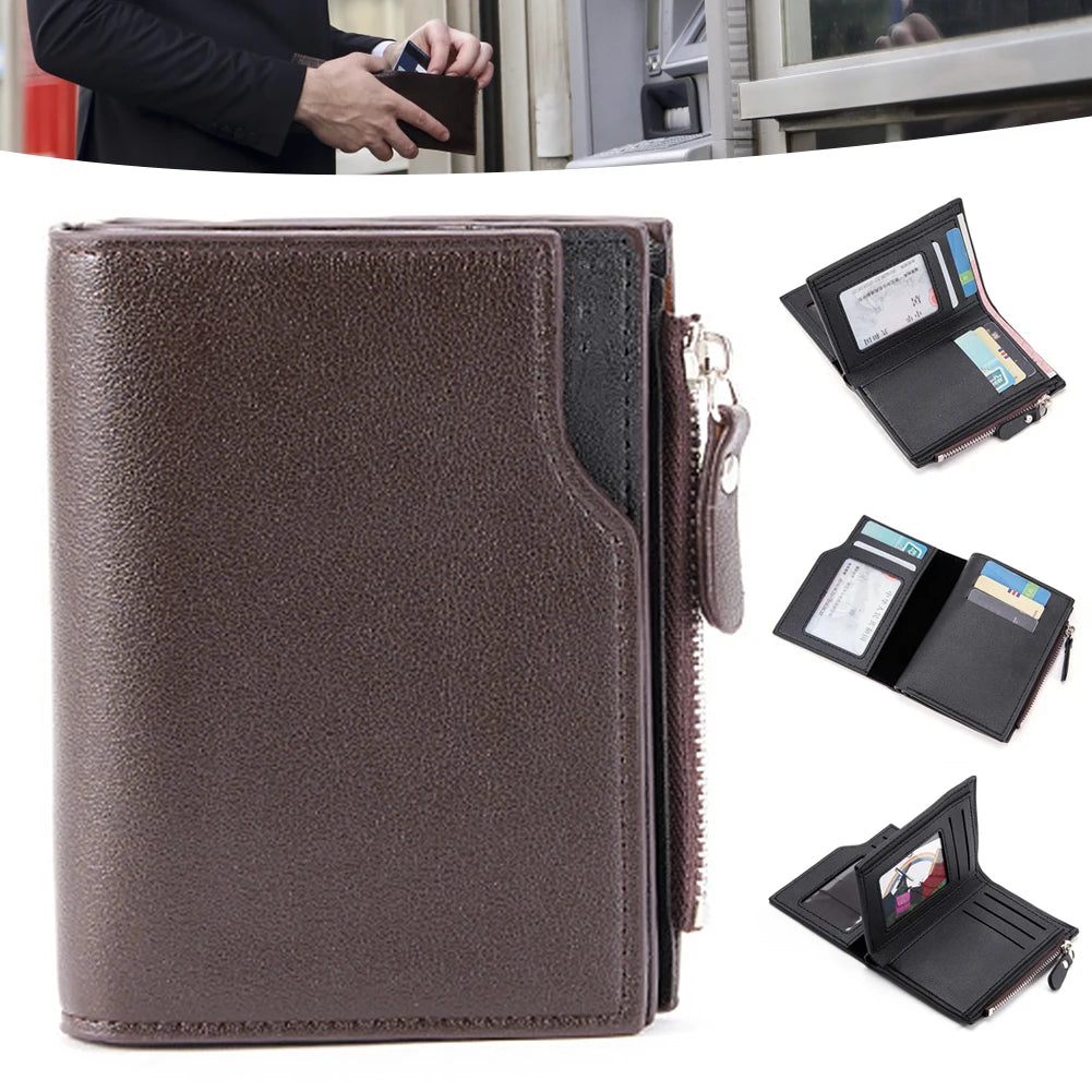 Anti-theft Leather Wallet For Traveling Ultra-thin Zipper Pocket Men Bag