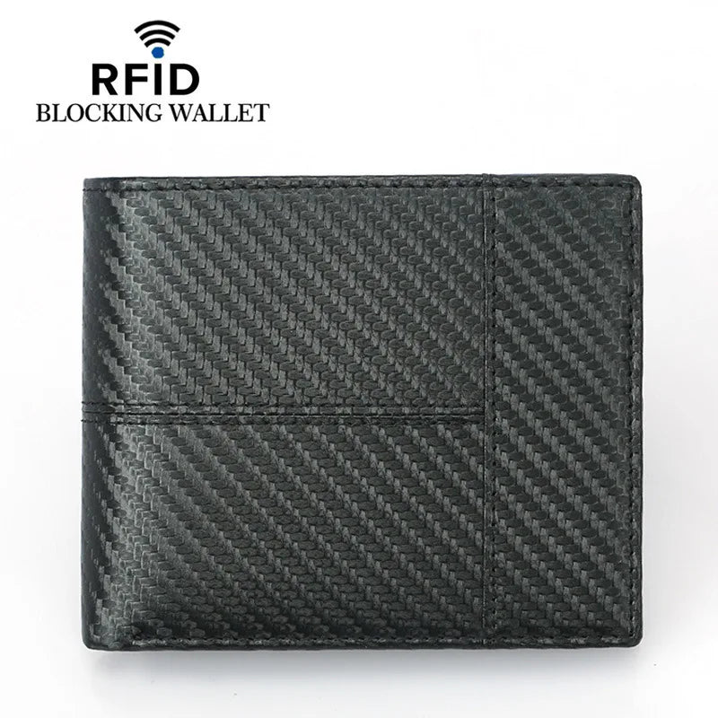 Keep your cards safe with this minimalist tri-fold RFID blocking men's carbon fiber wallet.