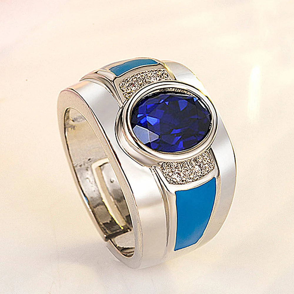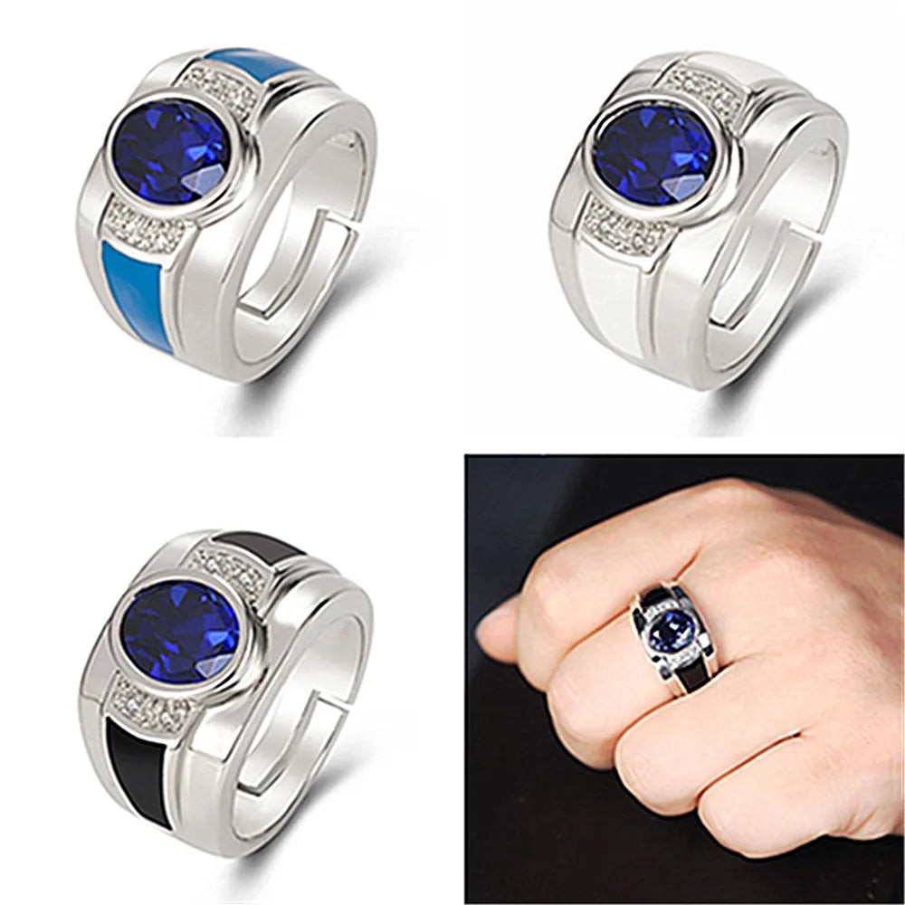 Crystal Sapphire Gemstone Silver Ring for Men