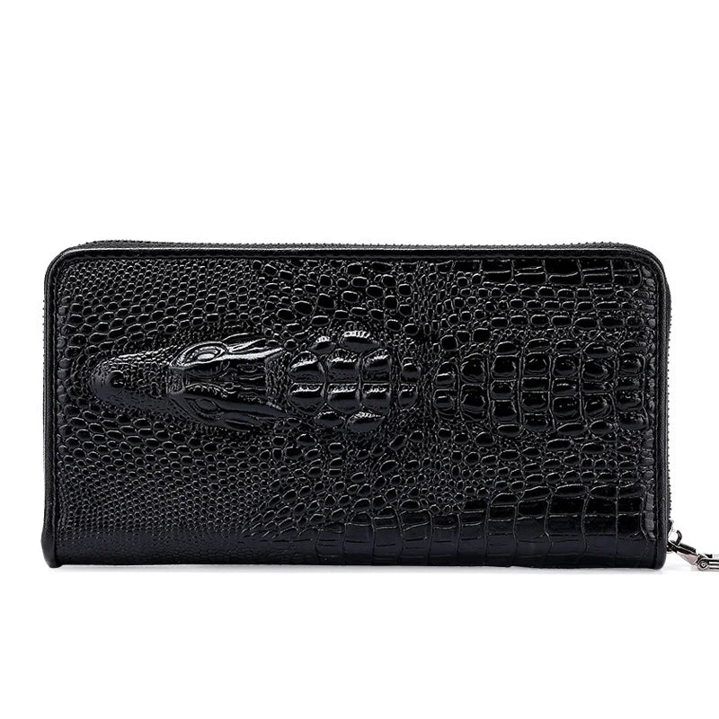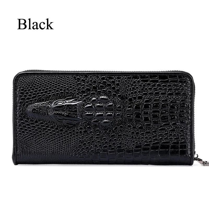 Gothic Crocodile Clutch Bag Men's Leather Wallet Business Zipper Long