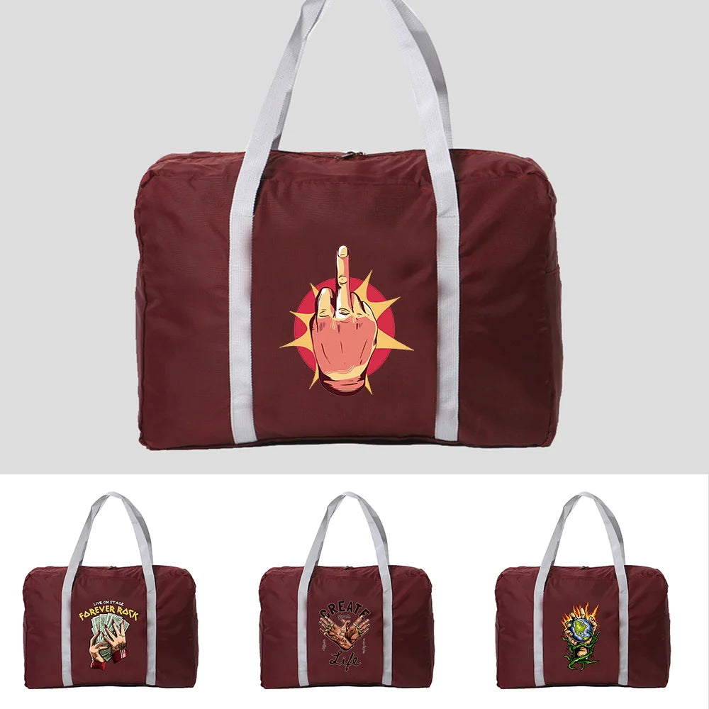 This foldable travel bag is perfect for organizing your clothes and essentials. It features a large capacity and is made of waterproof material. Ideal for men and women, this unisex hand series print bag is a must-have for your travel adventures.