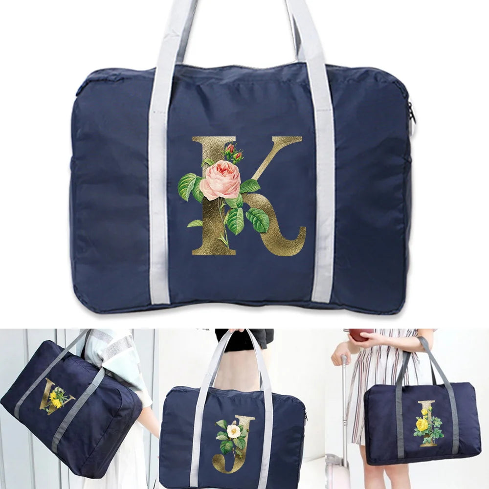 Large Capacity Foldable Travel Bags Golden Flower Letter Pattern