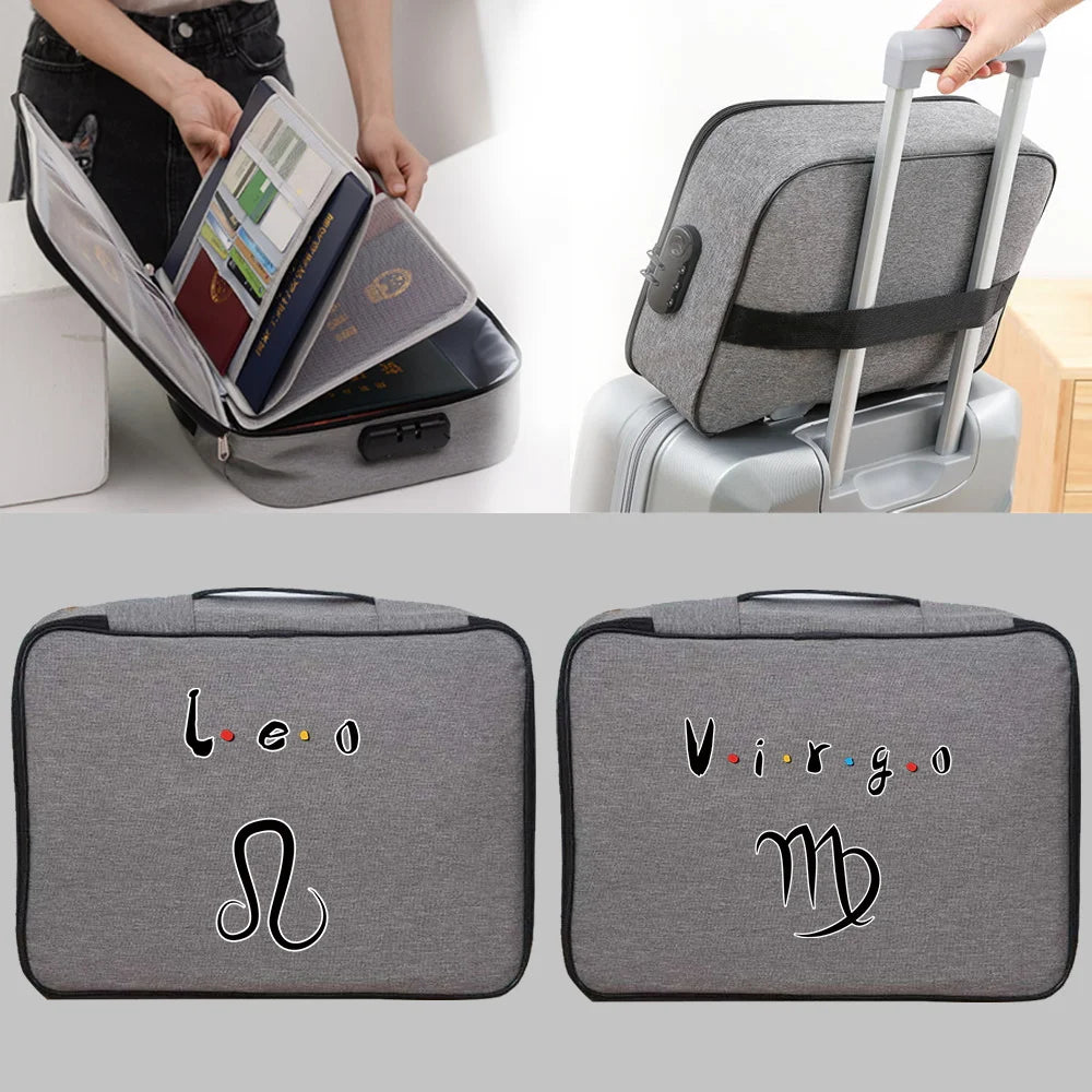 This large storage bag is perfect for organizing documents, files, passports, and more. It features a password lock for extra security and a stylish constellation print design.