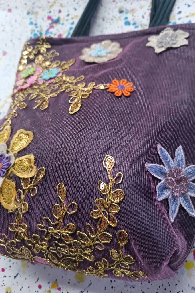Leather DIY Lace Sequins Embroidery Shopping Bag