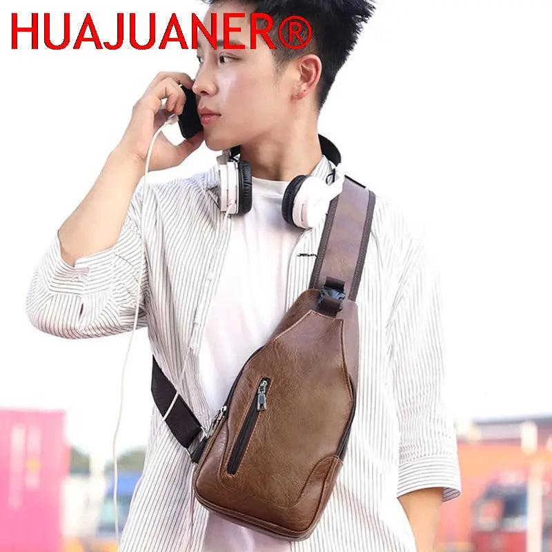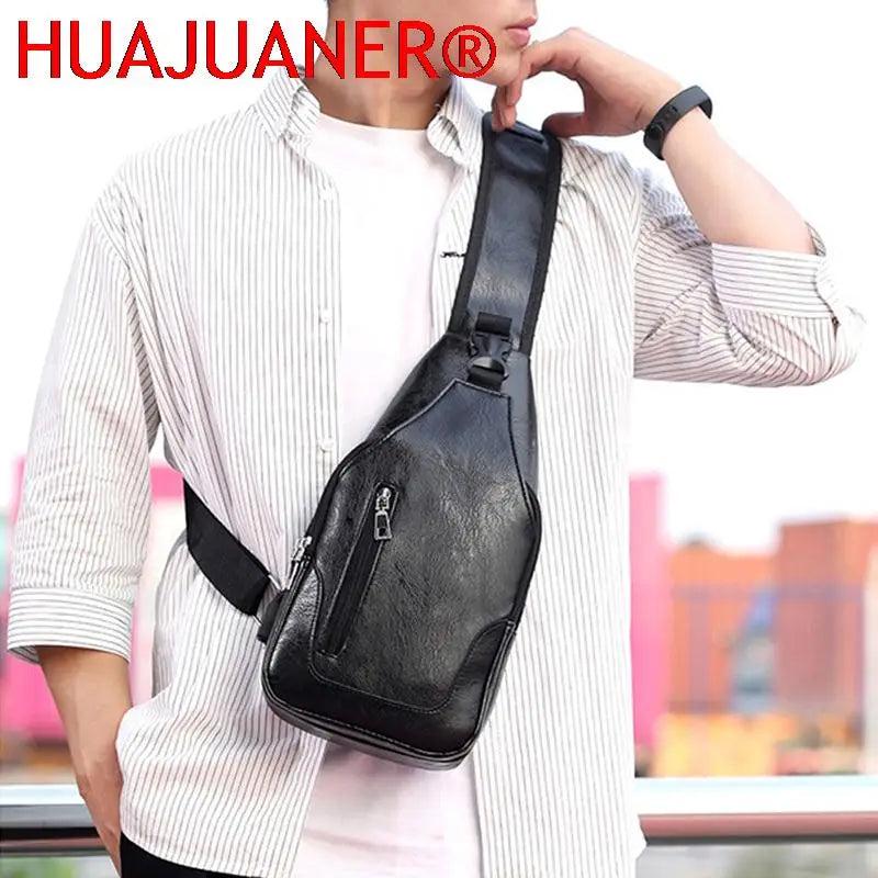 Leather Men Chest Bag Vintage Crossbody Shoulder Bag Business Sling Bags