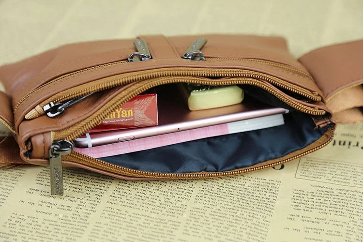 Leather Waist Bag Vintage Belt Bag Multifunction Phone Change Bag