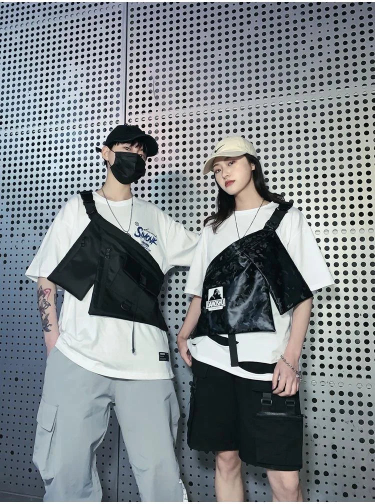 This men's hip-hop streetwear chest bag is a functional and stylish accessory for carrying essentials. It features a tactical pouch design and can be worn around the waist. Ideal for travel and everyday use.