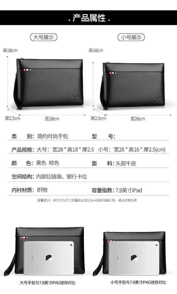 Men Clutch Bag Large Capacity Envelope Pouch Leather Handbags