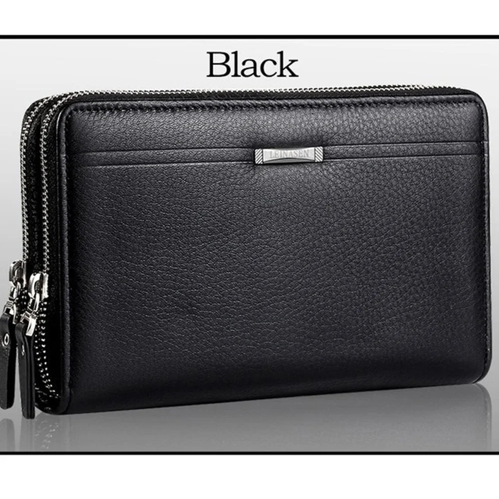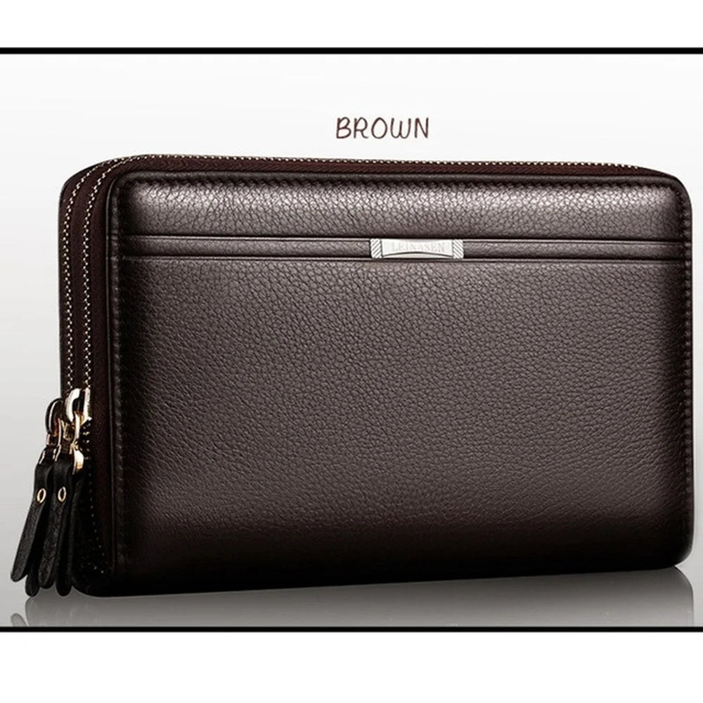This men's clutch bag is perfect for business and casual use. It features a double zipper design for convenient access to your money and cards. The brown leather adds a touch of elegance to your style.