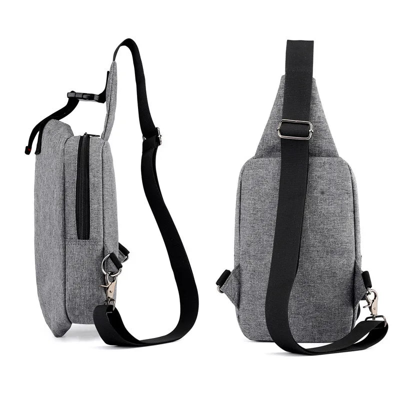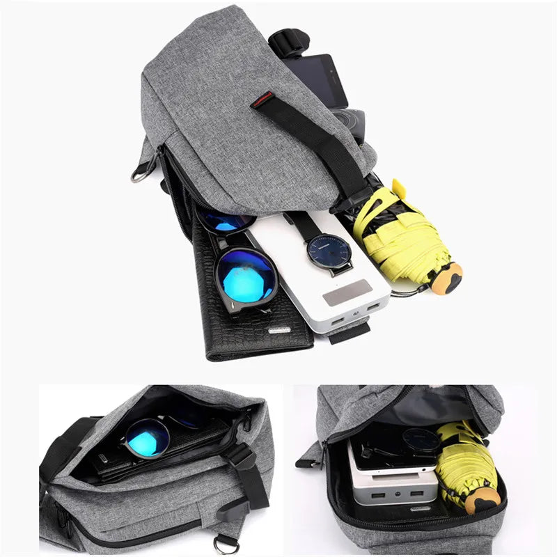 Men Oxford Chest Pack Shoulder Handbag USB Charge Casual Gray Crossbody Bags