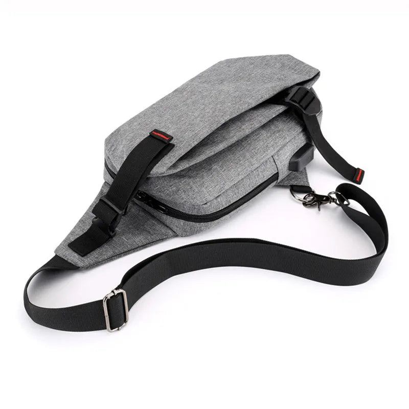 Stay organized and hands-free with this stylish men's chest pack. Made of durable Oxford fabric, it features a USB charging port for added convenience.