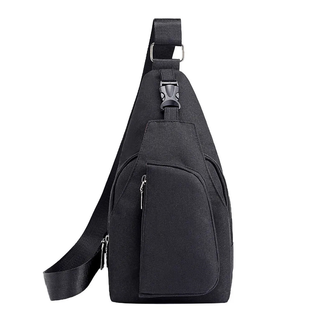 This men's chest bag is made of durable Oxford cloth and is ideal for sports and outdoor activities. It offers multiple functions and ample storage space.